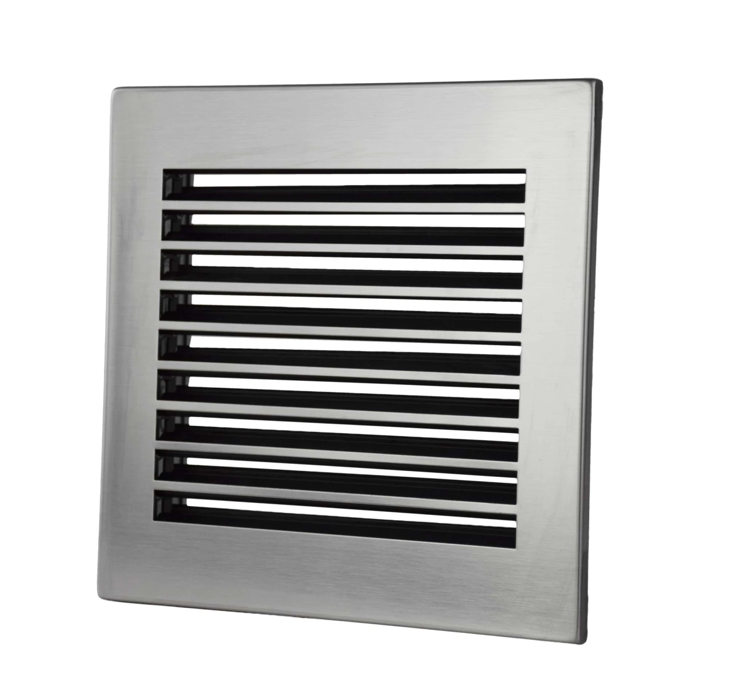 Lüftungsgitter aus Stahlblech, zur Verbrennungsluftversorgung; mit einer optisch ansprechenden Blende aus geschliffenem Edelstahl; einfache Montage durch praktischen Einbaurahmen.