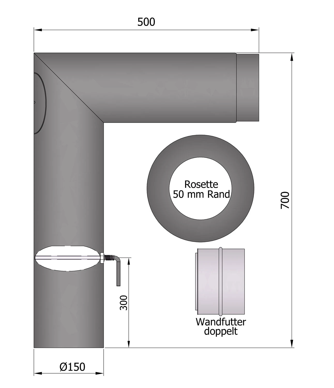 Rauchrohrset 90° 700 x 500 mm schwarz