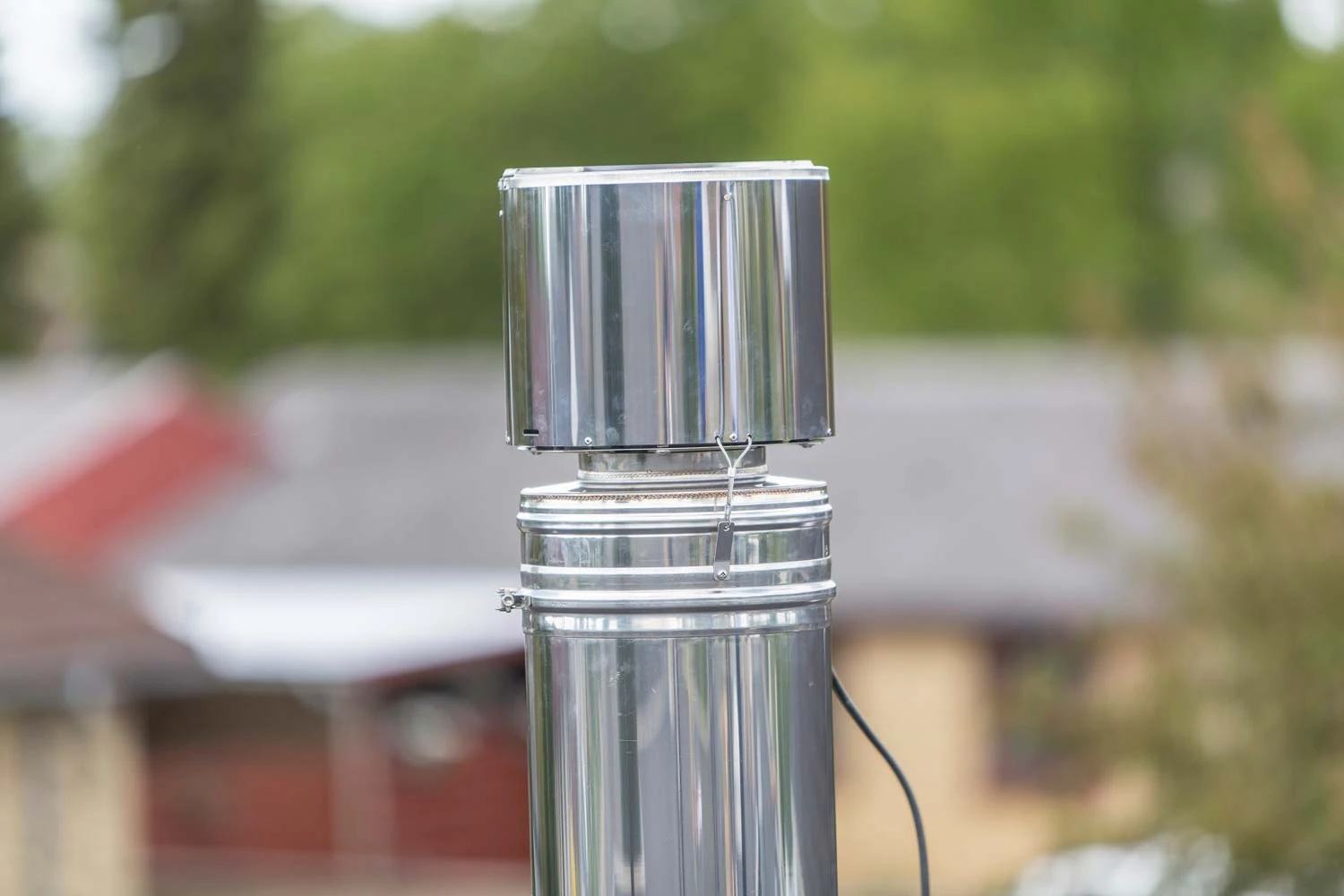 Neben der unauffälligen Form ist er universell für gemauerte Schornsteine und Edelstahlschornsteine von 110-220 mm geeignet. Möglich macht das ein anpassbarer Adapteranschluss der durch Verpressung in der Schornsteinmündung sicheren Halt gibt.
