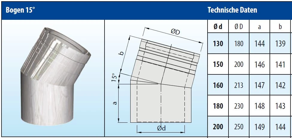 Wenn Sie Wert auf Qualität und hochwertige Verarbeitung legen, bestellen Sie unser Produkt „Schornstein Winkel 15° doppelwandig – eka cosmos D 25“ bei uns im Shop.