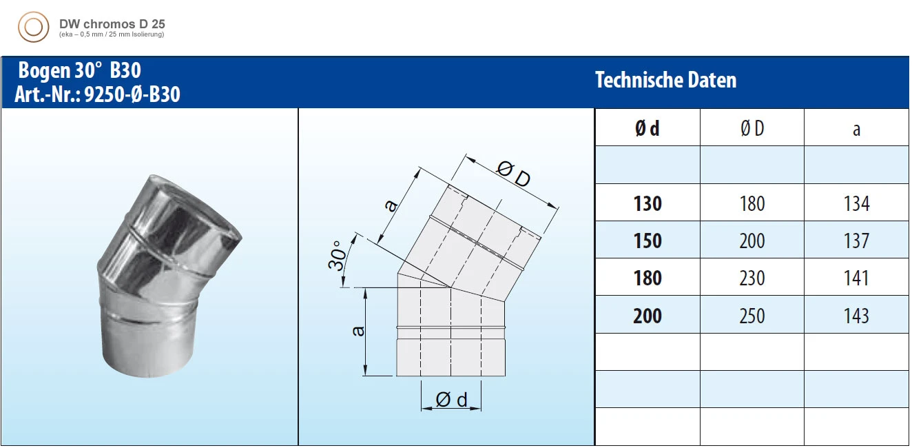 Schornstein Winkel 30 Grad / doppelwandig / eka chromos D 25