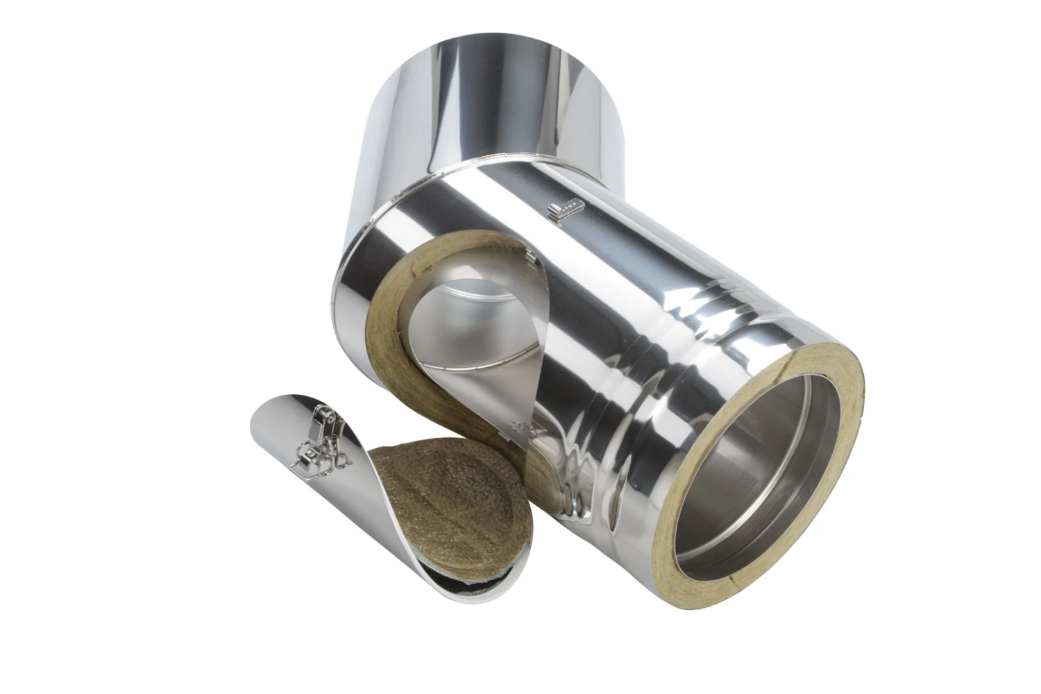 Der doppelwandige Schornstein-Winkel aus bestem V4A und V2A Edelstahl (Materialnummer: 1,4404 oder 1,4301) ist für Heizquellen für Holz, feste Brennstoffe, Pellets und weitere konzipiert und die perfekte Lösung für einen an der Außenwand montierten Schornstein. Dank der guten mittleren Rauhigkeit von 1,0 mm werden Rußablagerungen im Rohr auf ein Minimum reduziert.